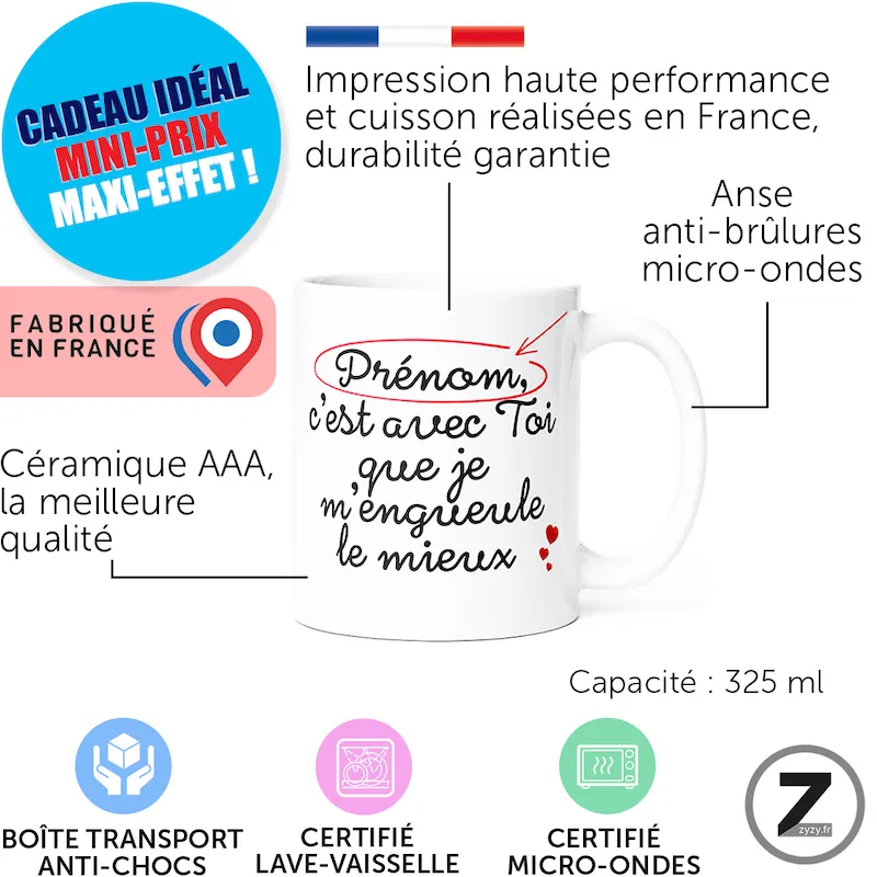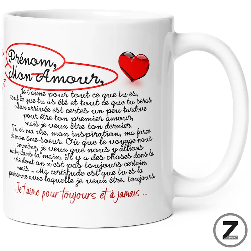 Disponible sur ziggymug.fr, ce mug love pas cher associe qualité française, personnalisation prénom et plaisir quotidien.Vue rapide -