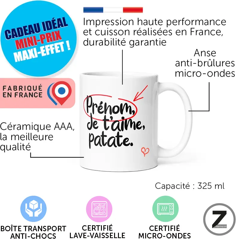 Mug personnalisable JE T’AIME PATATE