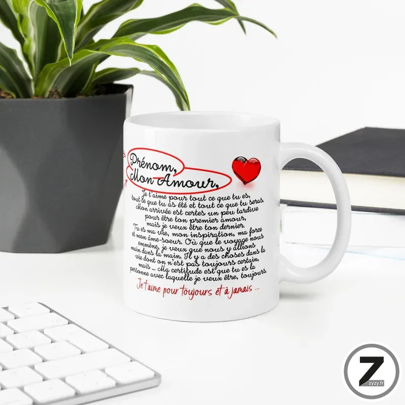 16,99 €Ce mug amour personnalisé transforme chaque boisson en déclaration d’amour décalée grâce à un message drôle assumé.Cadeau…Option à ajouter avant validation du panier16,99 €Ce mug amour personnalisé transforme chaque boisson en déclaration d’amour décalée grâce à un message drôle assumé.