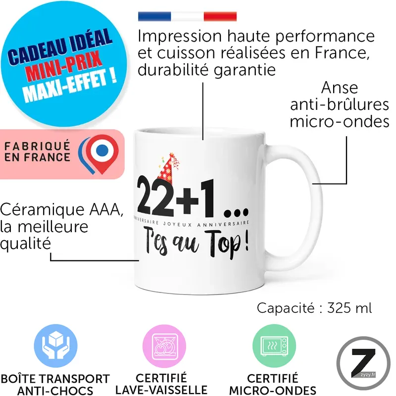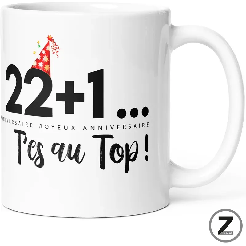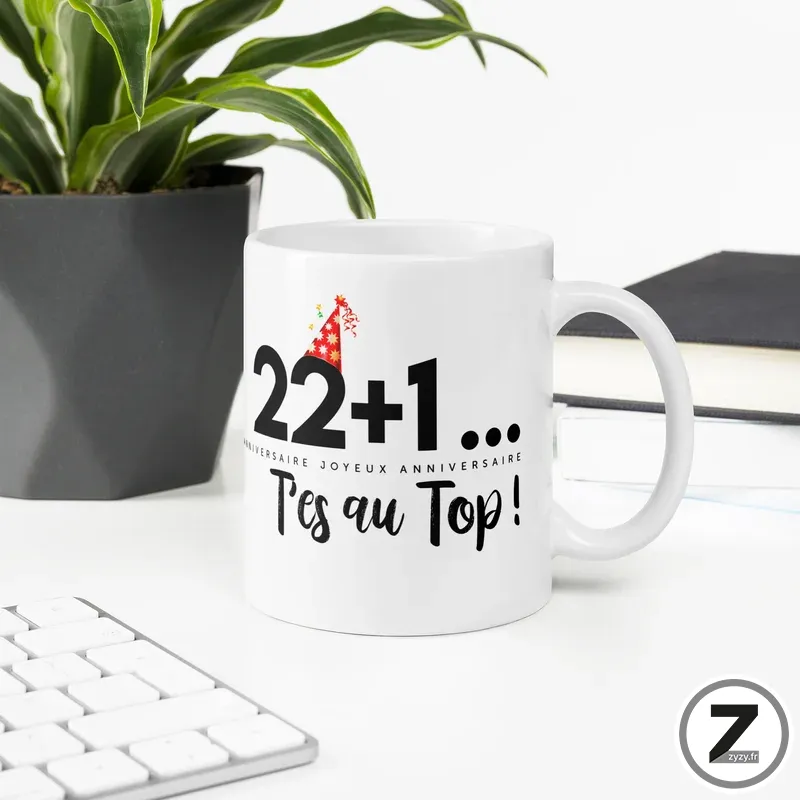 Mug anniversaire 22+1 t’es au top