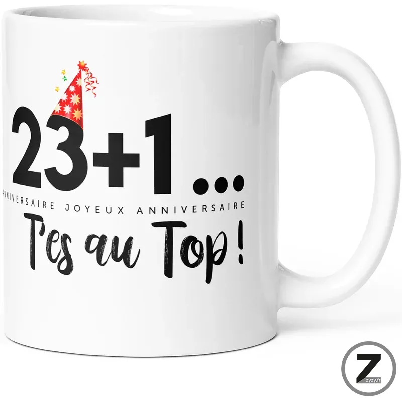 Mug anniversaire 23+1 t’es au top