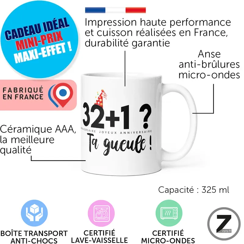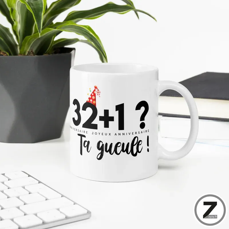 Mug anniversaire 32+1 t’es au top !
