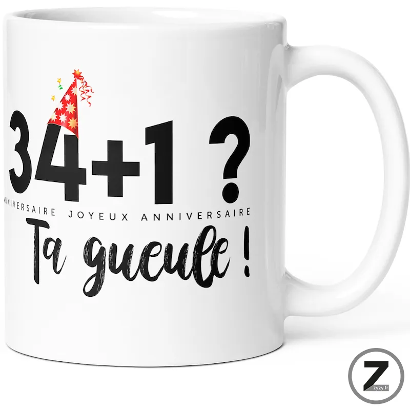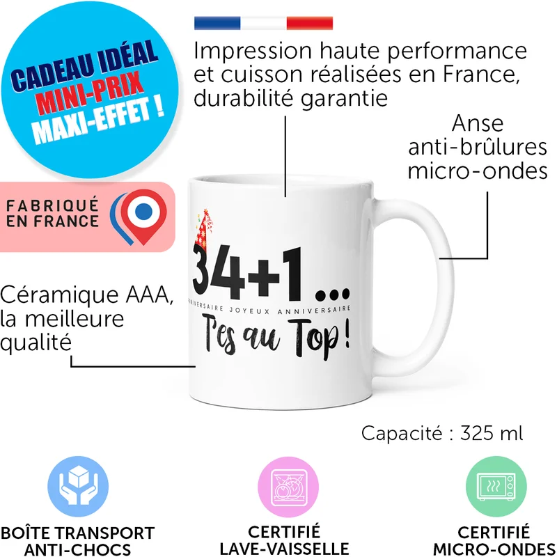 Mug anniversaire 34+1 t’es au top !