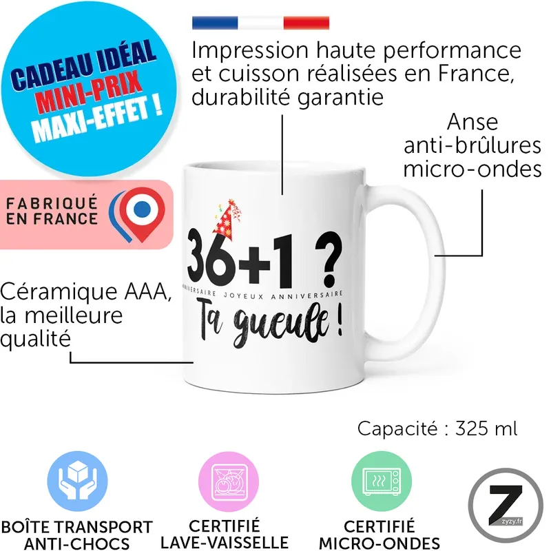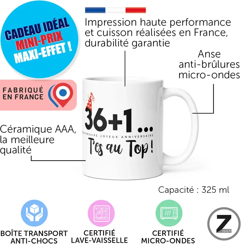 Mug anniversaire 36+1 t’es au top !