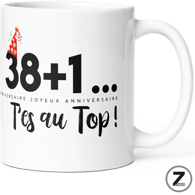 Mug anniversaire 38+1 t’es au top !