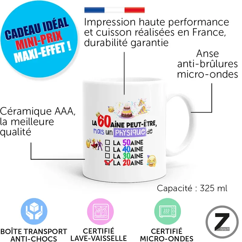 Ainsi, offrir ce mug 60 ans crée une surprise audacieuse, drôle et mémorable pour amis, collègues ou proches avertis.