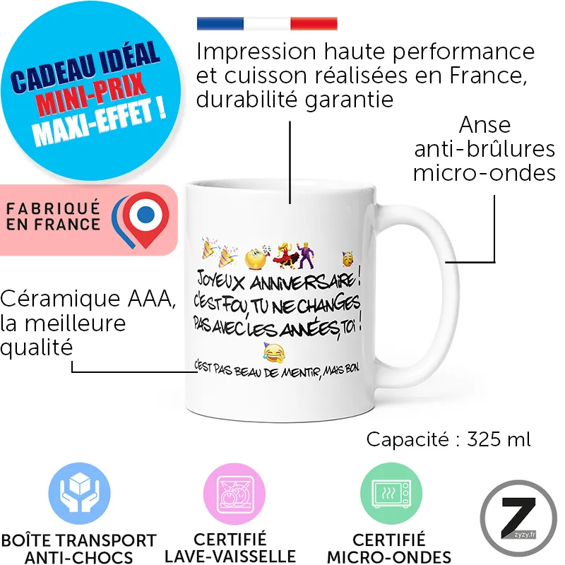Commandez sur ziggymug.fr ce mug humour robuste, livré protégé rapidement pour fêter chaque année.Vue rapide -