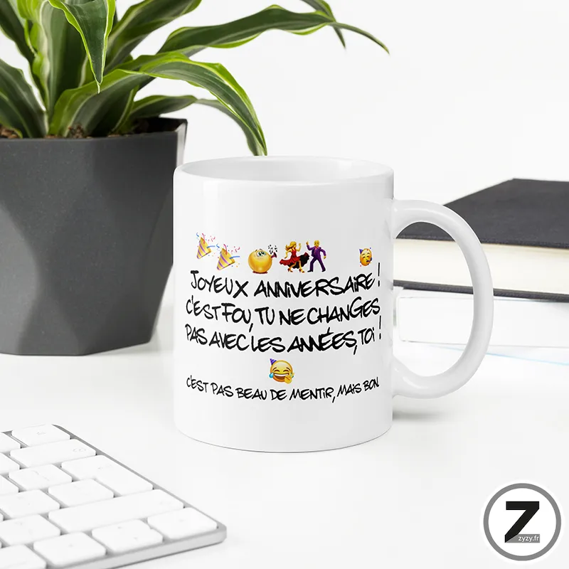 Disponible sur ziggymug.fr, ce mug joyeux anniversaire devient le cadeau original humour que tout le monde adore recevoir et utiliser.