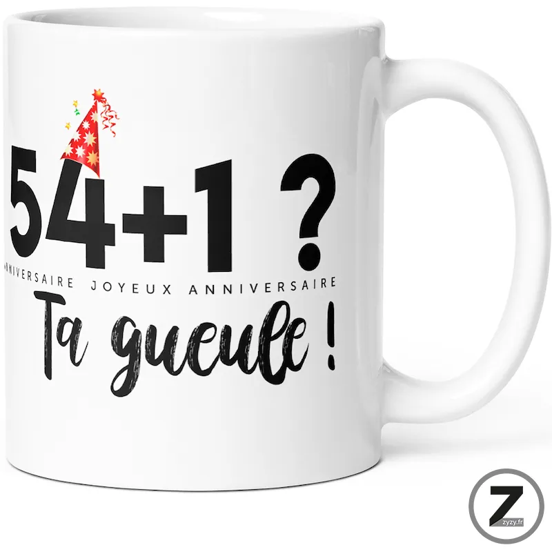 16,99 €Ce mug anniversaire humoristique célèbre cinquante-cinq ans avec autodérision, qualité française et sourire quotidien partagé autour d’une…Ajouter au panier16,99 €Ce mug anniversaire humoristique célèbre cinquante-cinq ans avec autodérision, qualité française et sourire quotidien partagé autour d’une boisson chaude.