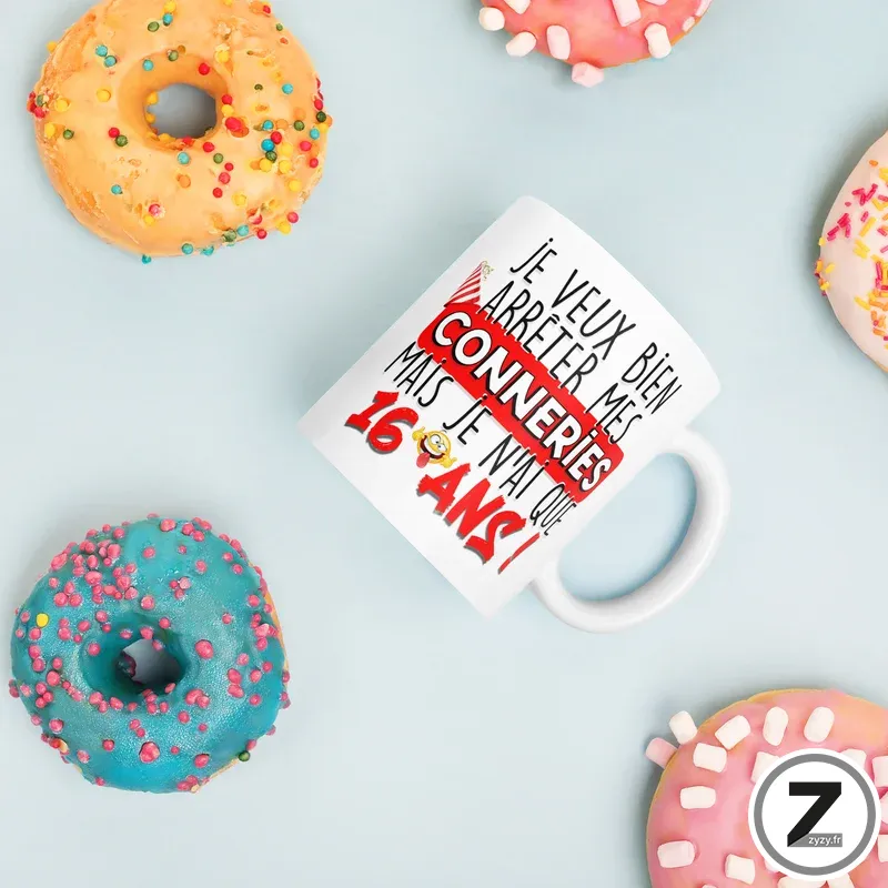 Mug humour ARRÊTER MES CONNERIES 16 ANS