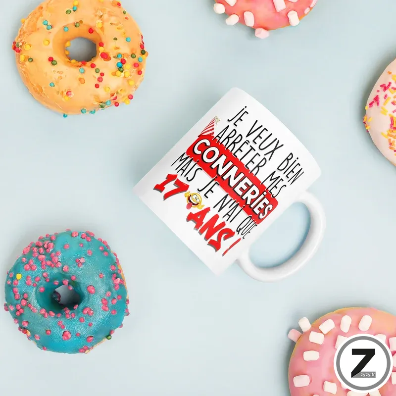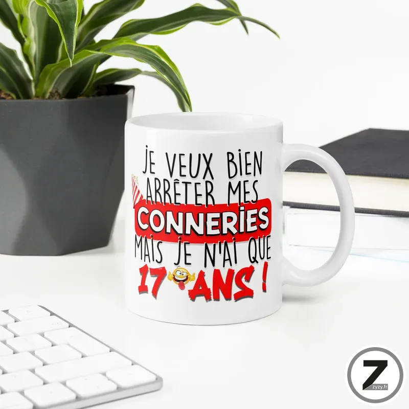 Mug humour ARRÊTER MES CONNERIES 17 ANS