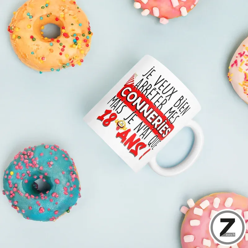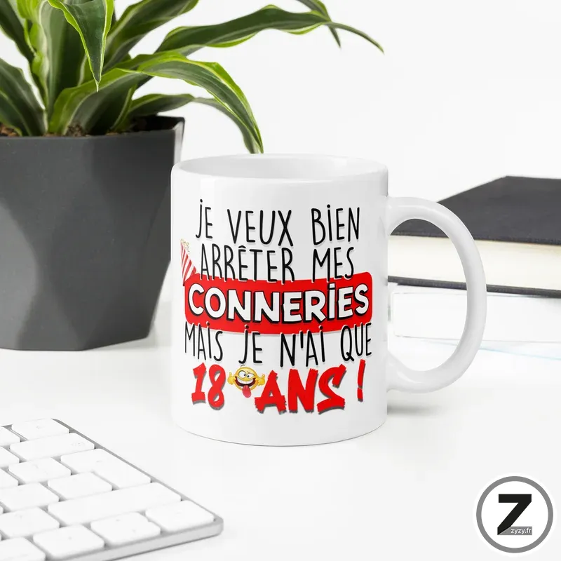 Mug humour ARRÊTER MES CONNERIES 18 ANS