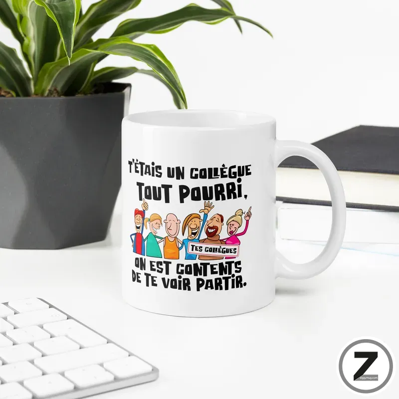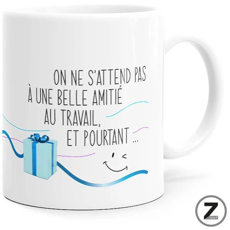 Ainsi ce cadeau collègue devient mug rigolo parfait pour anniversaire, Noël, mutation ou pot de départ émouvant.