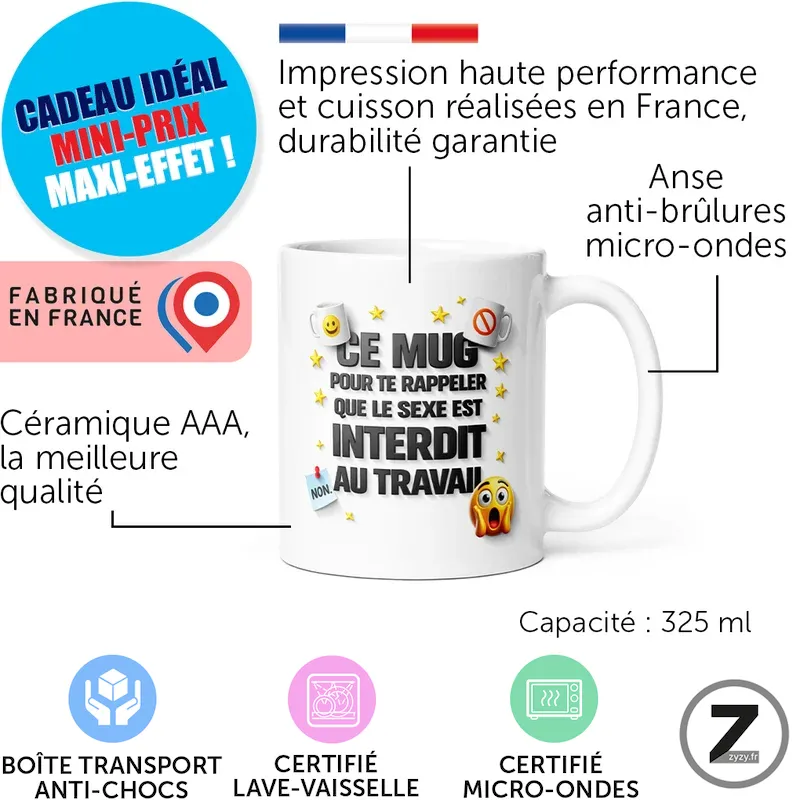Mug humour SEXE INTERDIT AU TRAVAIL