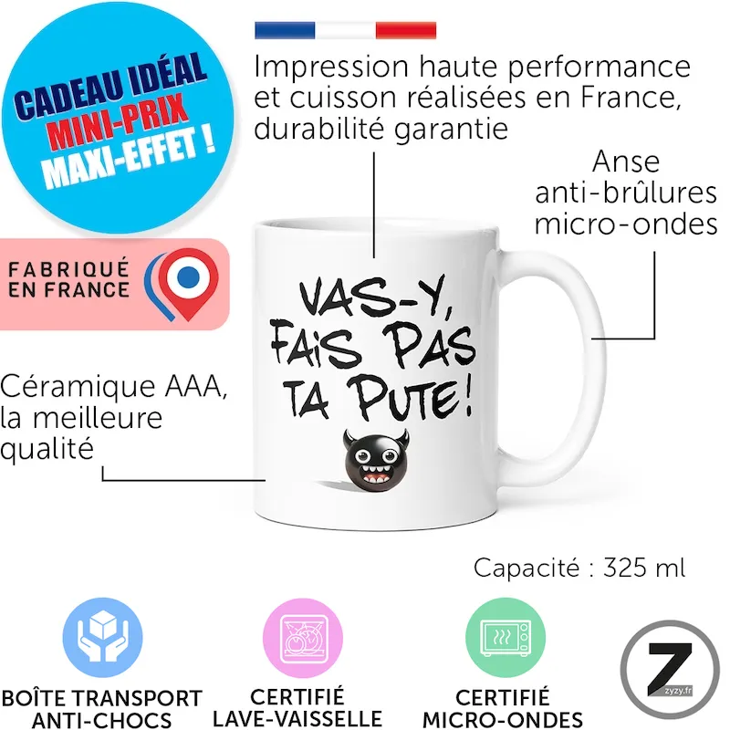 Mug humour VAS-Y, FAIS PAS TA PUTE
