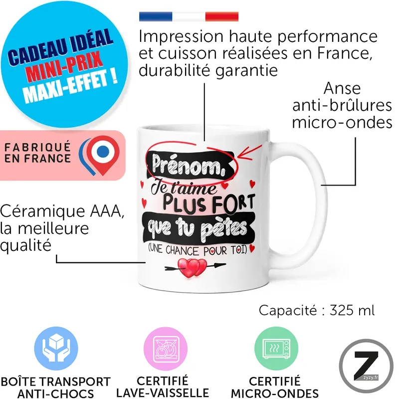 Mug personnalisable PLUS FORT QUE TU PÈTES