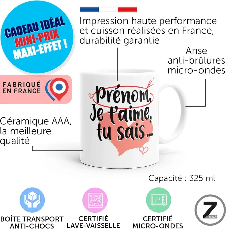 Mug personnalisable JE T’AIME TU SAIS