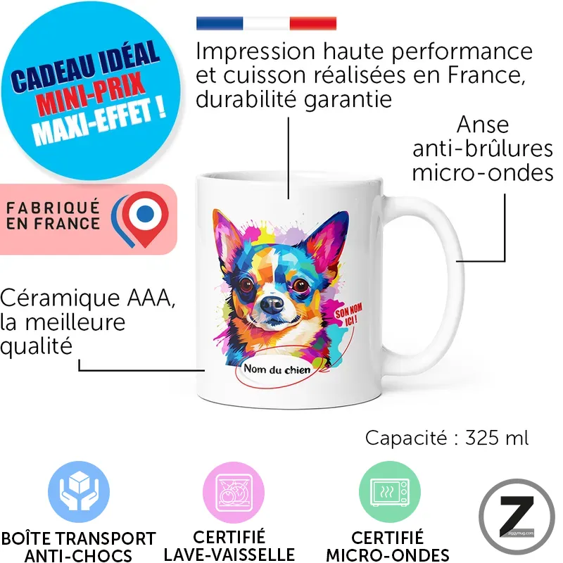 16,99 €Ce mug personnalisable chihuahua transforme chaque café en moment complice et drôle avec votre animal de compagnie…Option à ajouter avant validation du panier16,99 €Ce mug personnalisable chihuahua transforme chaque café en moment complice et drôle avec votre animal de compagnie préféré.