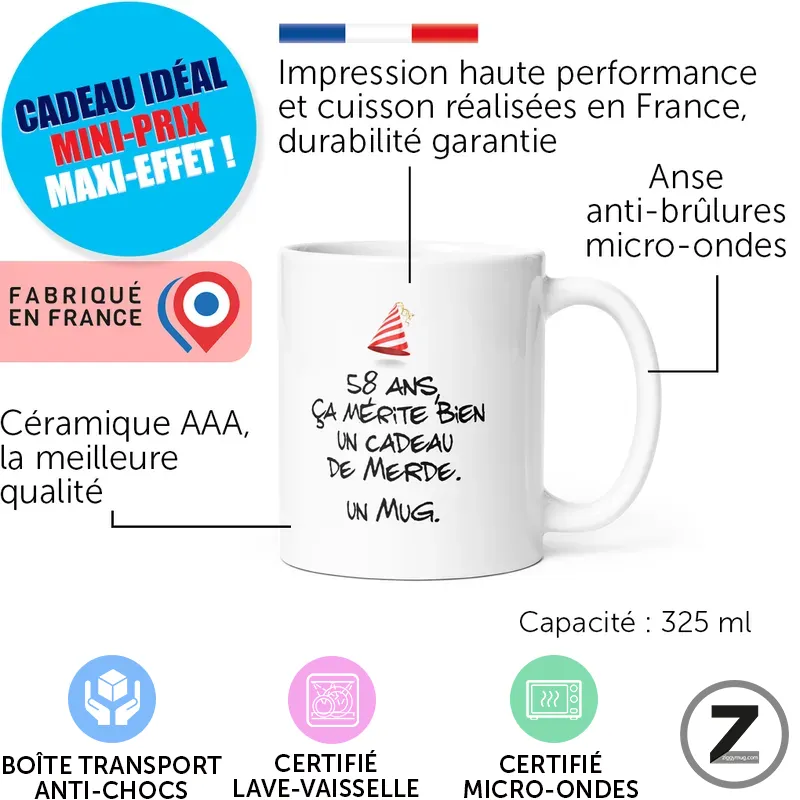16,99 €Ce Mug CADEAU DE MERDE 58 ANS transforme chaque boisson en moment drôle avec un message simple…Ajouter au panier16,99 €Ce Mug CADEAU DE MERDE 58 ANS transforme chaque boisson en moment drôle avec un message simple et direct.