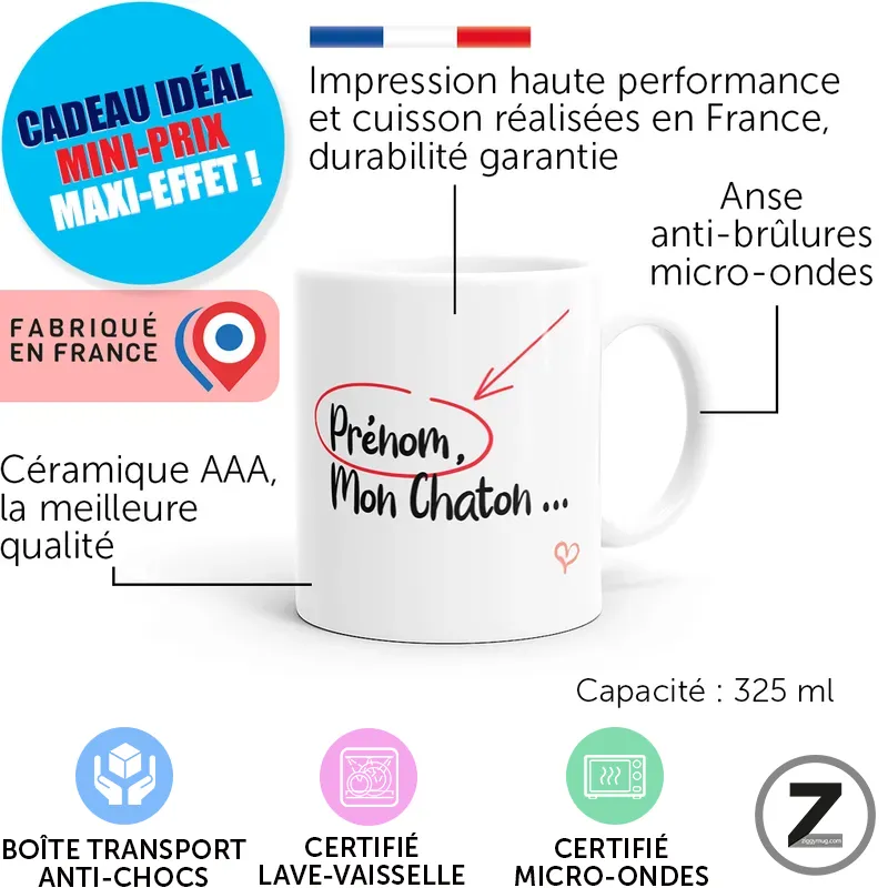 16,99 €Ce mug personnalisable mon chaton transforme chaque café en message tendre partagé avec votre partenaire.Il représente un…Option à ajouter avant validation du panier16,99 €Ce mug personnalisable mon chaton transforme chaque café en message tendre partagé avec votre partenaire.
