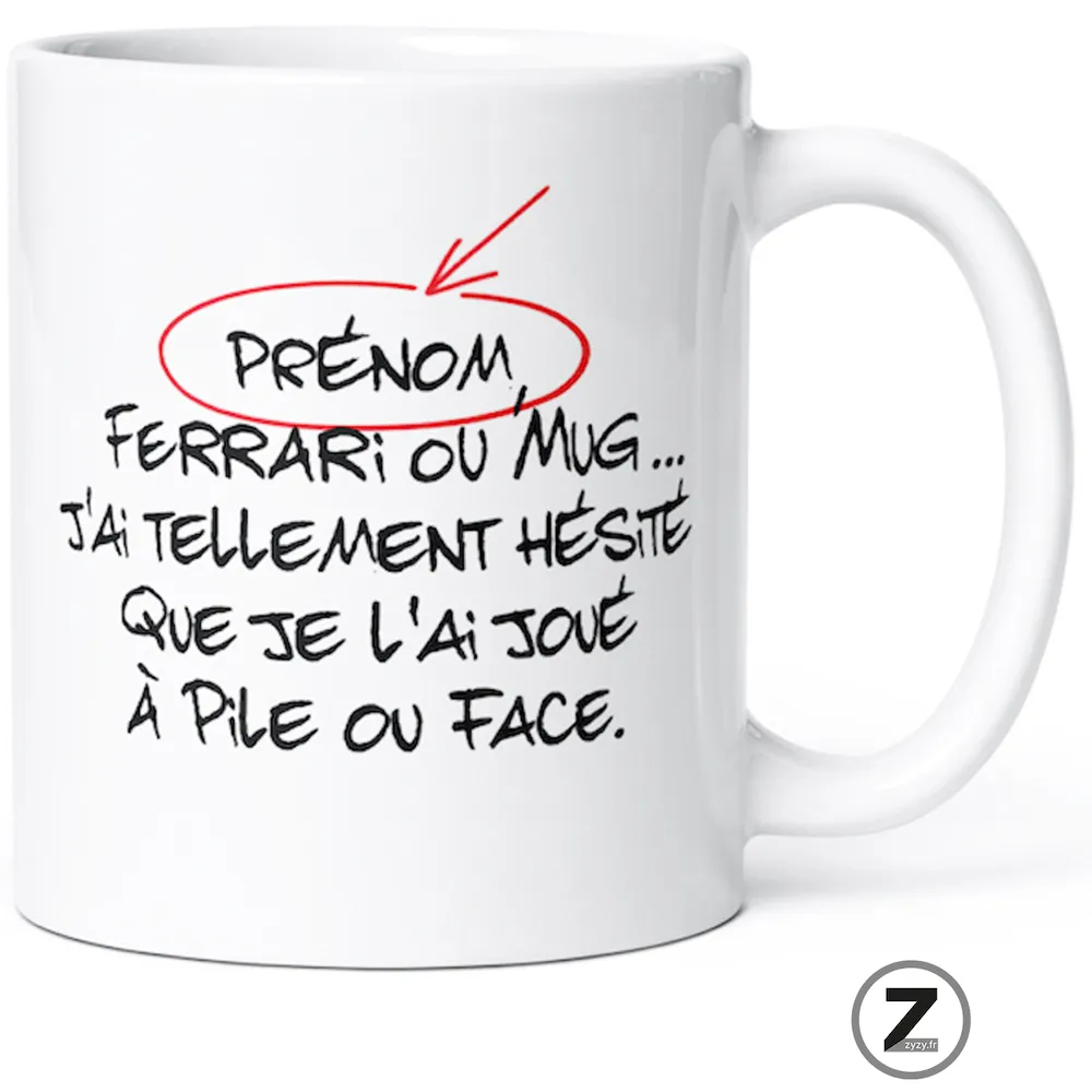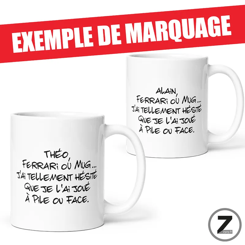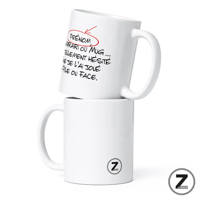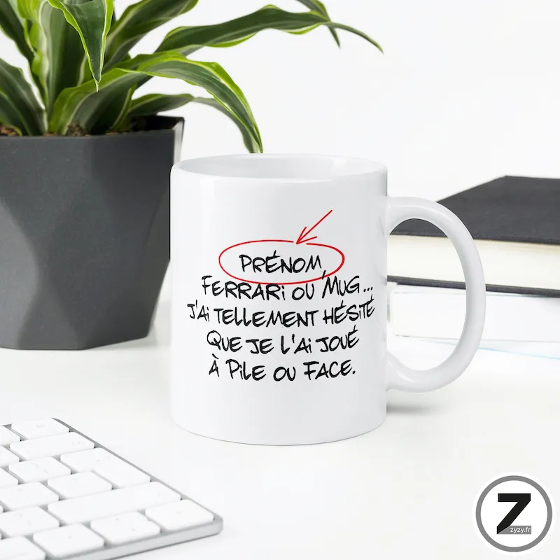 e mug personnalisable Ferrari associe humour subtil, design de voiture de prestige, et personnalisation élégante. Ainsi, ce mug humour devient un cadeau original humour idéal pour toutes occasions comme cadeau Noël, cadeau d’anniversaire, cadeau collègue, cadeau ami, ou mug St Valentin. Donc, offrez une tasse drôle premium, fabriquée en France, avec céramique durable, impression qualité et emballage antichoc. Ensuite, personnalisez prénom ou message pour un mug rigolo unique. Finalement, démarrez chaque journée avec une pointe Ferrari et un sourire garanti.