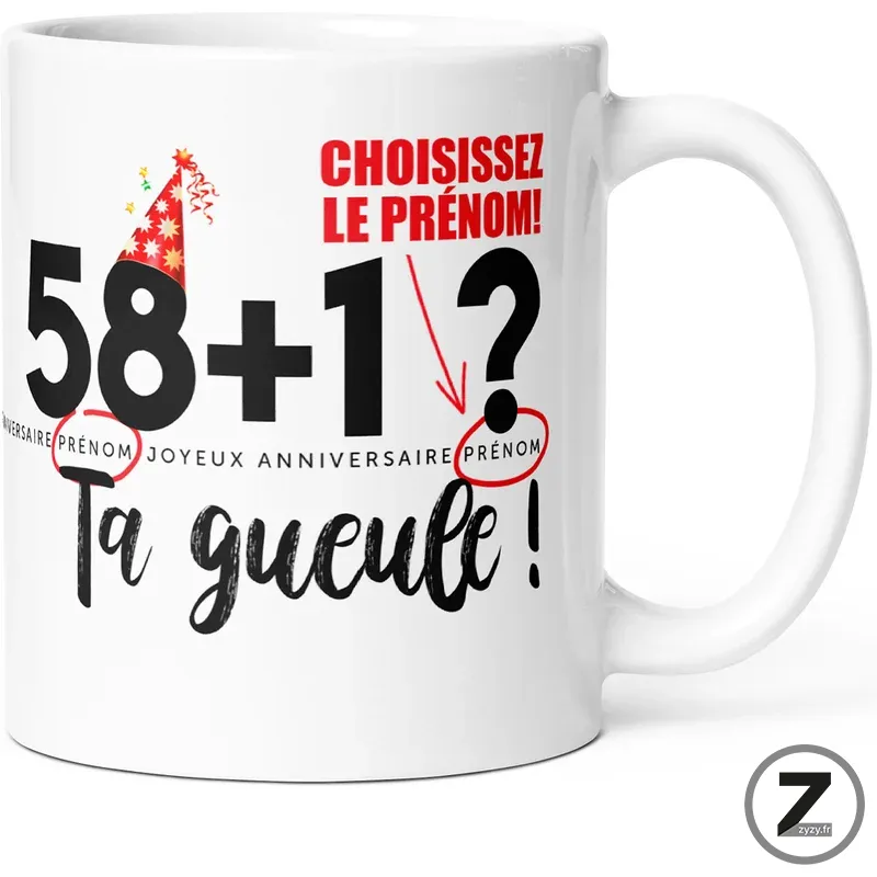 Mug Personnalisable Anniversaire 60 ans + Prénom Humour Tasse Message Drôle Personnalisé. Idée Cadeau Original Homme Femme Ami Collègue Copain Copine Anniversaire Soixante ans Soixantaine.