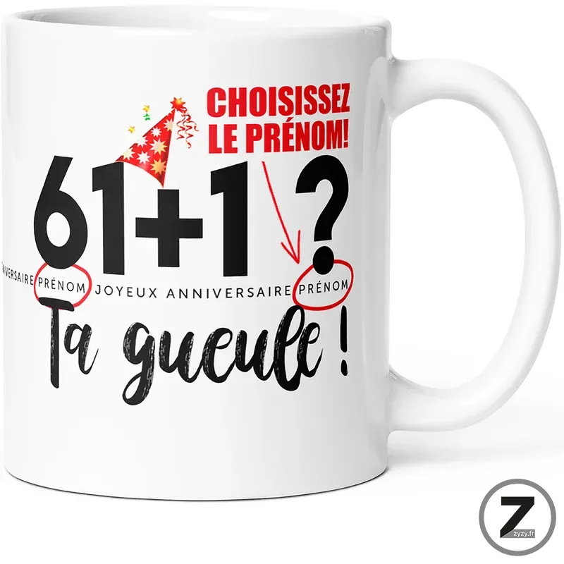 Mug Personnalisable Anniversaire 61 ans + Prénom Humour Tasse Message Drôle Personnalisé. Idée Cadeau Original Homme Femme Ami Collègue Copain Copine Anniversaire Soixante et un ans Soixantaine.