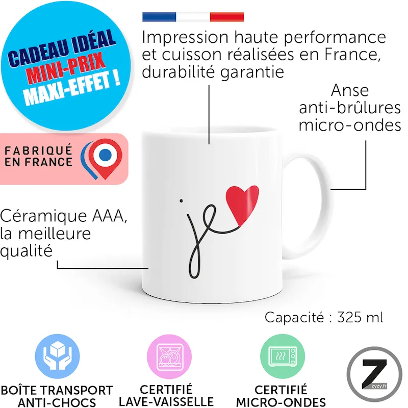 Disponible sur ziggymug.fr, ce mug love pas cher associe qualité française et design affectif quotidien.