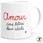 Mug AMOUR IDIOTS : le mug amour qui transforme chaque matin en petite scène romantique hilarante.