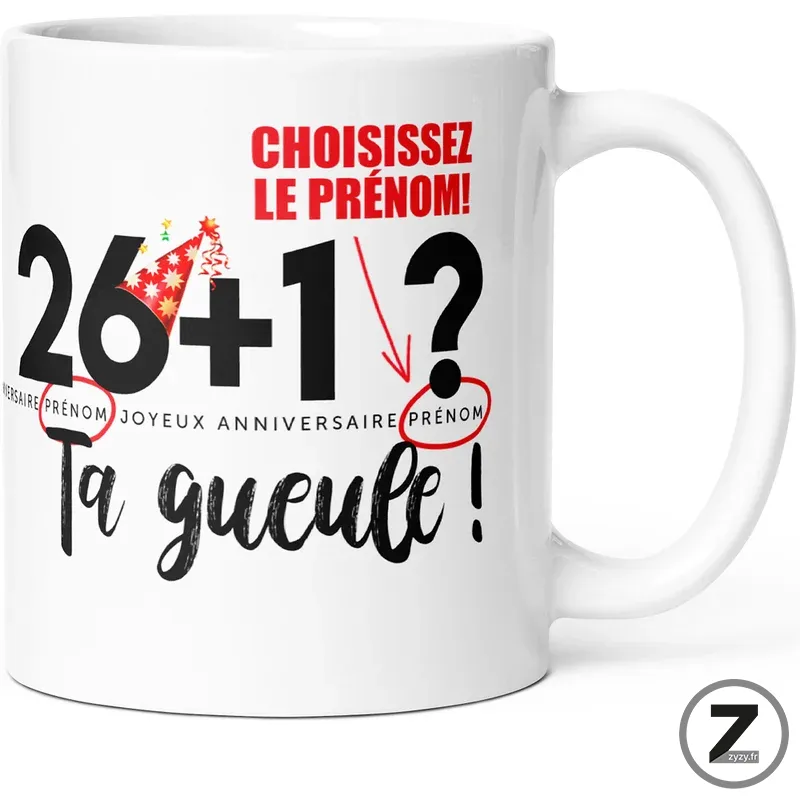 Ainsi, Mug anniversaire 26+1 t’es au top ! apporte une énergie positive dès le réveil avec un message motivant.