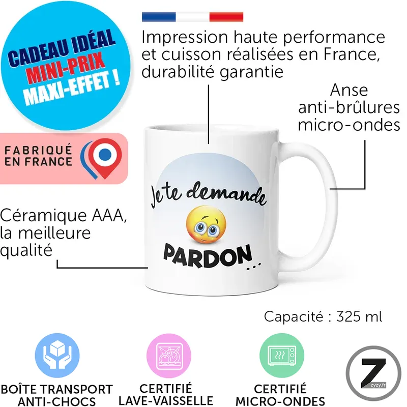 Parce que chaque journée commence mieux avec un sourire, ce mug humour donne le ton dès le réveil. Grâce à son message doux et spontané, le Mug humour Au cas où, je t’aime crée un moment tendre dès la première gorgée. En effet, ce design chaleureux ajoute une touche romantique tout en restant léger. De plus, il offre un style unique qui plaît autant aux couples qu’aux amoureux discrets. Ce cadeau fonctionne pour un cadeau romantique, un cadeau St Valentin, un cadeau d’anniversaire ou un simple geste attentionné. Ainsi, il se présente comme un message d’amour idéal pour surprendre élégamment votre moitié. Par ailleurs, la qualité d’impression française garantit des couleurs durables. Évidemment, ce mug rigolo reste entièrement compatible avec le micro-ondes et le lave-vaisselle. Enfin, sa céramique AAA assure confort, résistance et excellente tenue des motifs chez ziggymug.fr.