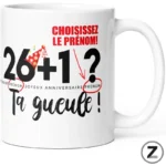 Ainsi, le Mug humour personnalisable 26+1 TA GUEULE ! annonce la couleur dès le matin avec un second degré assumé.