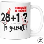 Ainsi, le Mug humour personnalisable 28+1 TA GUEULE ! annonce immédiatement la couleur avec un humour franc et assumé.