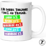 Accueil / Mug collègues / Mug JE ME DONNE TOUJOURS À 100% AU TRAVAIL
