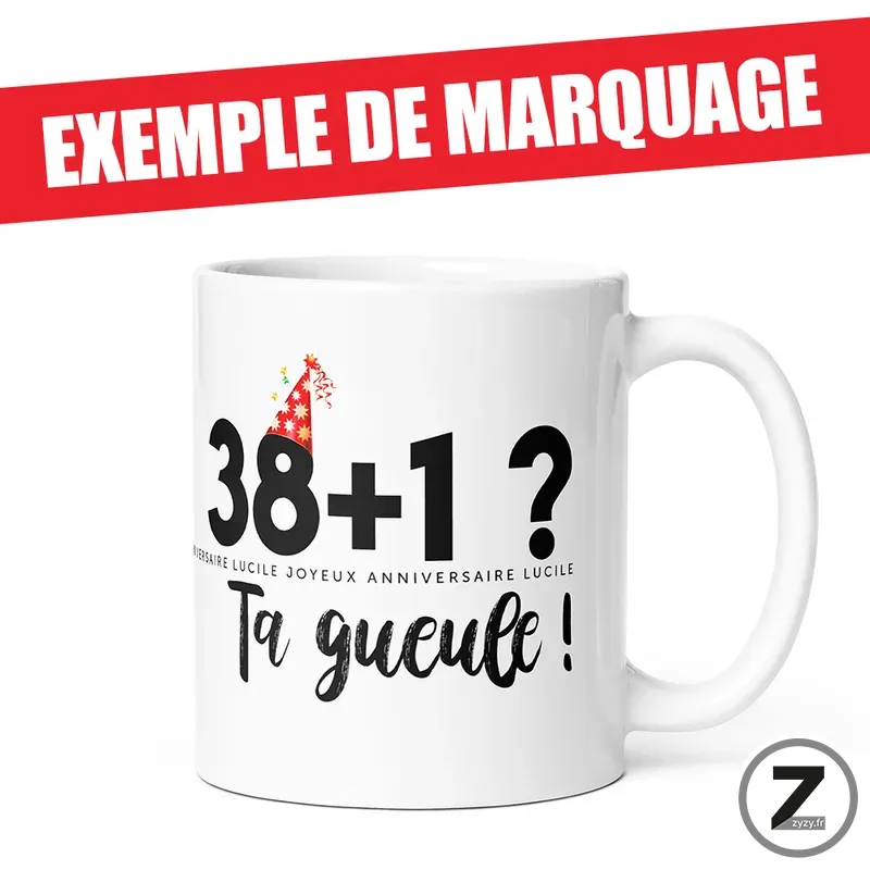 Découvrez le Mug personnalisable 38+1 TA GUEULE !, un mug anniversaire parfait pour fêter un mug 39 ans avec humour et originalité.
