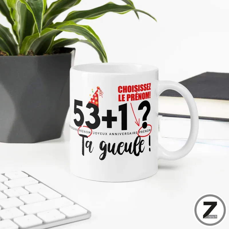 Découvrez le Mug personnalisable 41+1 TA GUEULE !, un mug anniversaire parfait pour fêter un mug 42 ans avec un humour subtil et joyeux.