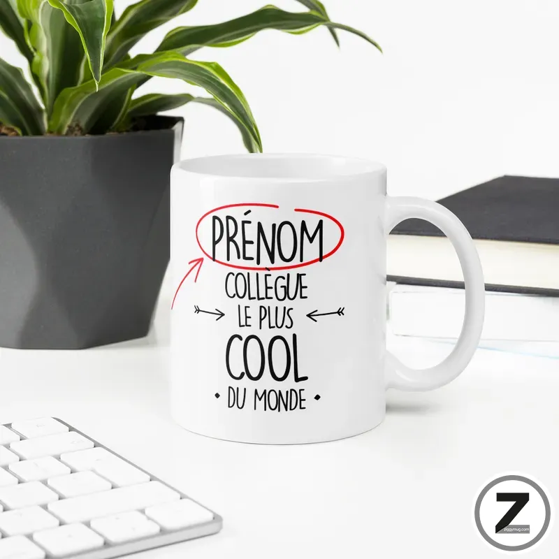 Ce mug collègue apporte une note conviviale au bureau.
