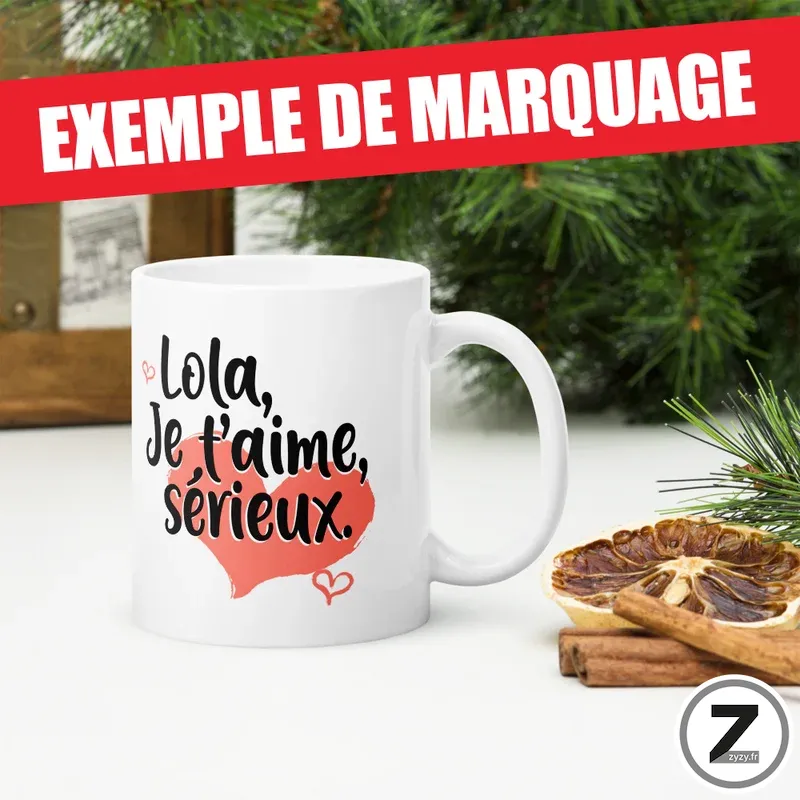 La personnalisation donne à ce mug personnalisable une vraie dimension affective.