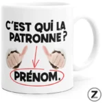 Chaque matin commence avec assurance grâce au Mug personnalisable C’EST QUI LA PATRONNE au ton délicieusement affirmé.